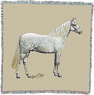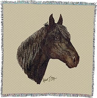 Pure Country Weavers – サラブレッドホースライトブラウン織スローブランケット フリンジ付き コットン USA 54x54 2370-LS