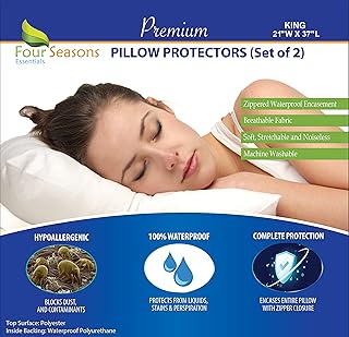 King Pillow Protectors (Set of 2) - Allergy Pillow Cover Bedbug Waterproof Hypoallergenic Dust Mite Proof Zippered Encasement