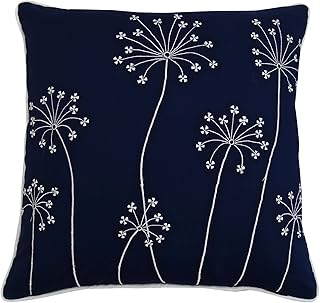 S4Sassy Floral Embroidered Navy Blue Pillow Cover Square Cotton Pillow Case Indian-20 x 20 Inches