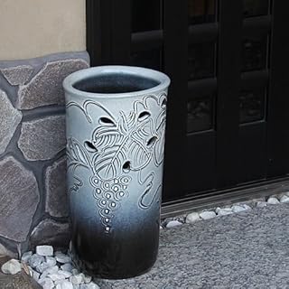 信楽焼 ぶどう透かし彫傘立て しがらき焼 笠立て 陶器 おしゃれ kt-0155