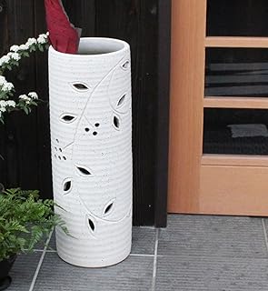 信楽焼 白くし目彫り傘立て しがらき焼 笠立て 陶器 おしゃれ kt-0157 (白)