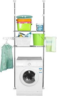 BAOYOUNI つっぱり棚 洗濯機ラック ランドリーラック2段 天井の梁や床の段差があっても設置できる 突っ張り式ラック ハンガーバー付属