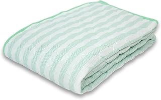 シ-フィ-ルド 今治リバーシブル5重ガーゼケット シングル [無地×ストライプ] 140x190cm グリーン[TM-37] 100230403103-01-02