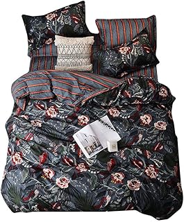 BeddingWish 布団カバー3点セット 寝具用品 通気性 シングル ボックスケース式 ベッド用 掛け布団カバーとボックスケースと枕カバー 百花爛漫 花が咲く ストライプ(シングル 150x210cm) HYHM-JJ-ST-GJN