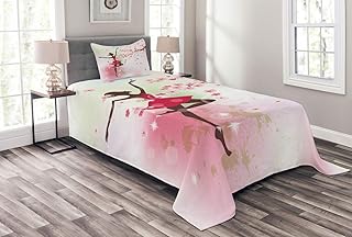 Lunarable キッズ ベッドスプレッド バタフライ 妖精 バレリーナ プリンセス ダンサー フローラル ツリー ブランチ フローラル 装飾キルトカバーセット ピローシャム付き ペールピンク マゼンタ ドライローズ ツイン bed_13063_twin