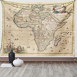 Lunarable アンティークタペストリー キングサイズ アフリカ大陸の古い地図 歴史的 素朴な原稿地理、壁掛けベッドスプレッド ベッドカバー 壁装飾 104インチ x 88インチ サンドブラウン