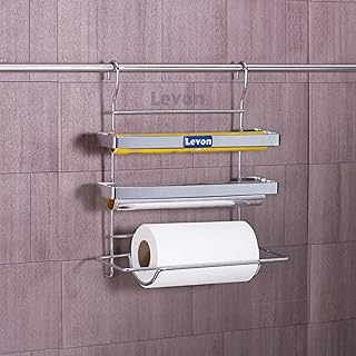 Levon Stainless Steel Hanging 3 in 1 Kitchen Triple Paper Dispenser & Holder | Wrap Aluminium Foil & Kitchen Roll - Size (340 X 135 X 305 mm)
