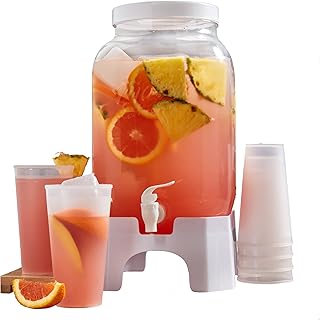 Mason Craft & More ドリンクウェア - 丈夫な太陽 アイスティー スクリューオン 蓋 高速凍結アイスキューブ 20オンス ドリンクカップ 16ピース プラスチックドリンクディスペンサーセット (キューブ8個、カップ6個、ディスペンサー1個、スタンド1個)