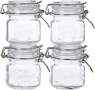 Mason Craft & More 気密キッチン食品保存クリアガラスクランプジャー 4ピース ミニクランプ保存ジャー (7オンス 12オンス 17オンス 22オンス)
