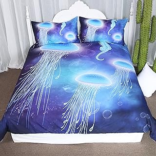 (King) - Arightex 3D Ocean Bedding Blue Jellyfish Duvet Cover Underwater Bedspread Deep Sea Bedding for Adult Kids (King)