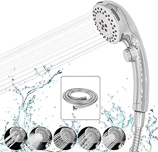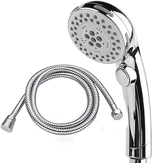 シャワーヘッド 5Star 一時止水 五段階水流 節水効果 増圧効果 保湿 美顔 取り付け簡単 工具不要 水漏れ防止 国際汎用基準G1/2 クロムメッキ(シルバー、ホース付き) 安心の品質保証付き