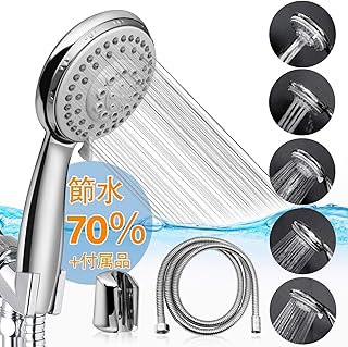 シャワー シャワーヘッド 高水圧 70%節水 低水圧増圧シャワー - 5段モードシャワー シャワーホース 極細水流 水漏れ防止 取り付け簡単 国際汎用基準G1/2シャワー・ヘッド