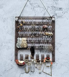 JEREVER イヤリングホルダー 壁掛けジュエリーオーガナイザー アクリルディスプレイラック 96穴 6フック ネックレス ブレスレット その他のアクセサリー用 (アクセサリーは含まれません) (クリア/ブラック )