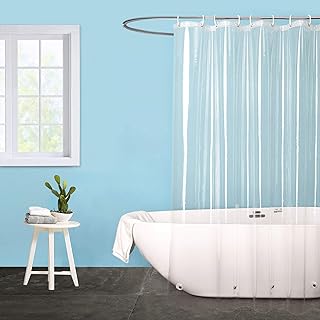 EurCross シャワーカーテン 透明 ビニールカーテン 防カビ 防水 風呂カーテン 220cm丈 浴室カーテン ユニットバス バスカーテン 厚さ0.2mm バス用品 リング付き 取付簡単 120 x 220cm ロング丈