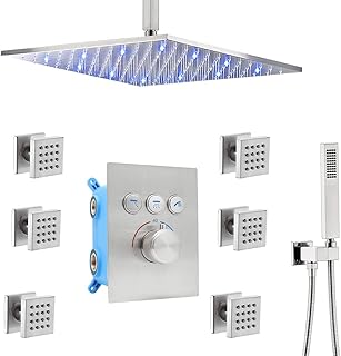 Enga 12インチ レインシャワーヘッド ボディジェットとハンドヘルド 天井マウントシャワー蛇口コンボセット すべてのオプションを一度に使用できます (つや消しニッケル)