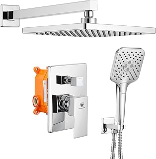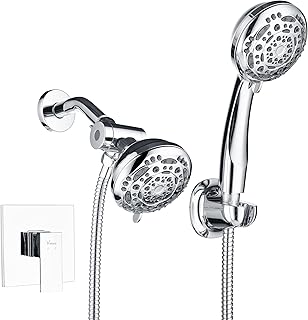 Vimco シャワーシステム シャワー蛇口セット 手持ちシャワー&レインシャワーヘッド デュアル2イン1 壁取付シャワーシステム バスルーム用 ラフインバルブボディとトリム付属 ポリッシュクローム