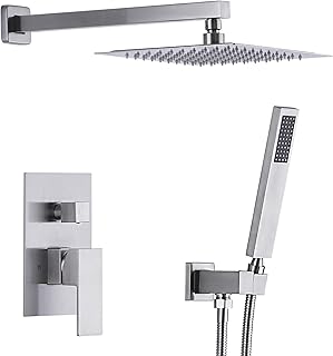JINCROP シャワー蛇口セット つや消しニッケル 2つの機能的レインフォールシャワーシステム 圧力バランスバルブ付き レインシャワーヘッド 手持ちシャワーヘッド ラフインバルブ付き