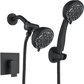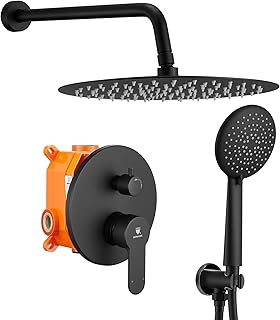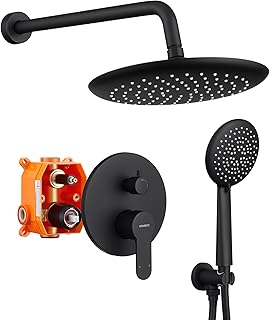 Vimco シャワーシステム シャワー蛇口セット 手持ちシャワー&レインシャワーヘッド デュアル2イン1 壁取付シャワーシステム バスルーム用 ラフインバルブボディ トリム付き マットブラック