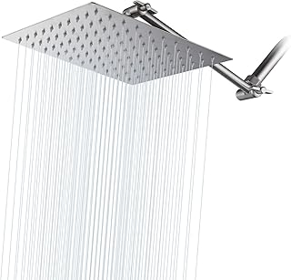 BRIGHT SHOWERS レインシャワーヘッド 10インチの調節可能な延長アームコンボ 8インチの高圧 ステンレススチール レインフォールシャワーヘッド 超薄型スクエアデザイン 取り付け簡単 クロム