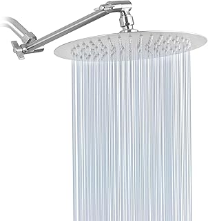 HarJue レインシャワーヘッド 11インチの調節可能なアーム 高圧ステンレススチールレインフォールシャワーヘッド 超薄型デザイン – 圧力ブースト (10インチのアーム付きシャワーヘッド、つや消しニッケル)
