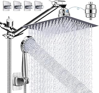 10インチ レインシャワーヘッド ハンドヘルドスプレーコンボ 高圧レインフォールシャワーヘッド 11インチ延長アーム 硬水&塩素用シャワーフィルター + ホース&フック4個 漏れ防止デュアルウォーターフォールシャワーヘッド