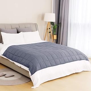 Isilila ガラス加重ブランケット 60インチ x 80インチ 15ポンド/20ポンド - クイーンサイズコットン 子供&大人向けの快適な睡眠品質 (グレー、60インチ x 80インチ、15ポンド)