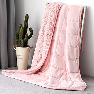 Topblan シェルパフリース加重ブランケット 15ポンド ユニフォームカラー ファジーフリースとシャギーシェルパ より良い睡眠 60 x 80インチ ピンク