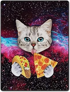 TSlook ブランケット 面白い 猫 星空 ピザ 食べる 美しい 豪華 快適 フラシ天 スローブランケット (60インチ x 80インチ)