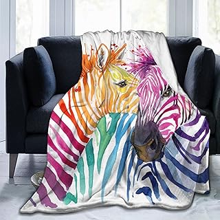 アフリカの野生動物 カラフルなゼブラホースフリーススローブランケット フラシ天 ベッドソファ用 80インチ x 60インチ