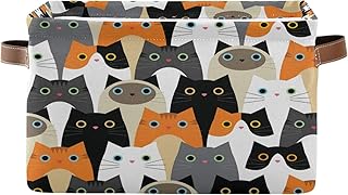 Ombra 収納バスケット かわいい動物猫柄 収納キューブボックス 丈夫なキャンバス製 折りたたみ可能 おもちゃバスケット オーガナイザー ハンドル付き 棚 クローゼット 寝室 家 オフィス用