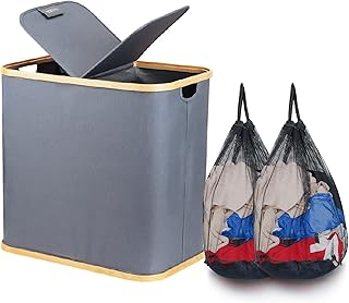 BHeadCat 92L ダブルランドリーハンパー 蓋付き 折りたたみ可能 ランドリーバッグ ハンドル付き 汚れた衣類バスケット 折りたたみ式ランドリーバスケット 寝室 おもちゃの衣類整理に