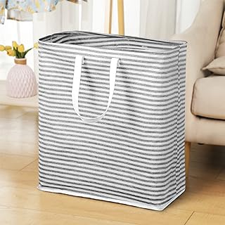 自立式ランドリー ハンパー、折りたたみ式大型衣類用バスケット、持ち運びに便利な拡張ハンドル付き衣類用おもちゃ,黒 持ち運びが簡単: 高さのある収納バスケットの両側に2つの拡張&調節可能なロープハンドルが設計されており、持ち運びが簡単です。片手で2本の洗濯物オーガナイザーを同時に持ち運べます。 階段の移動も簡単にできます。