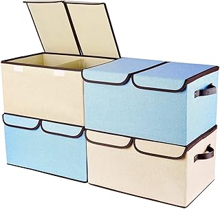 Senbowe 大型収納キューブ [4パック] リネン生地 折りたたみ可能 収納キューブ 容器 オーガナイザー バスケット 蓋付き ハンドル付き 取り外し可能な仕切り 家庭 保育園 クローゼット用 - (17.7 x 11.8 x 9.8インチ)