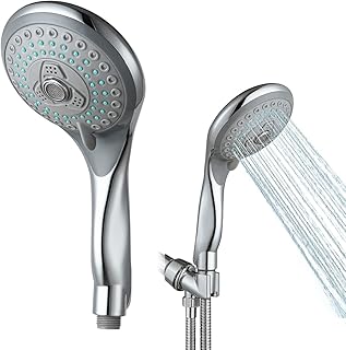 ハンドヘルドホース付きシャワーヘッド 高圧シャワーヘッド 360度回転 4サイドウォーターアウトレット オン/オフ 一時停止スイッチ 加圧式 クローム仕上げ