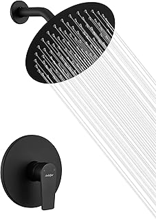 Anleijur バスルームシャワー 壁取り付け マットブラック シャワーシステム ボディ真鍮ヘッド ラウンドタッチクリーンシャワー蛇口セット 真鍮バルブシャワートリムキット ラフインバルブ付き シングル機能