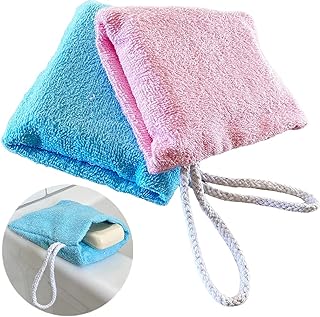 Evelots テリークロス ソープセーバー/ホルダー/ポケット-ロープ付き-バスルームシャワー-2個セット