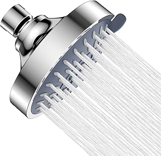 高圧シャワーヘッド レイン固定シャワーヘッド バスルームシャワー 4インチ 大流量シャワー 5段階スプレー設定 調節可能な回転ボールジョイント(クローム仕上げ)