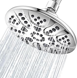 JDO 高圧 固定シャワーヘッド 6インチ レインシャワーヘッド 5段階スプレー設定 バスルーム レインフォールシャワーヘッド クロムメッキ仕上げ 角度調整可能