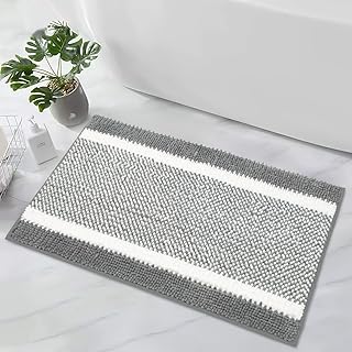 WELTRXE バスルームラグマット 2015インチ ノンスリップシェニールシャワーマット エクストラソフトで吸収性の高いストライプシャギーラグ 洗濯機洗い可 浴槽 シャワー バスルーム キッチン グレー