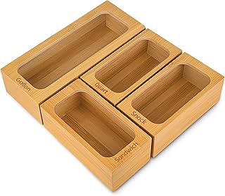Fulldepot 食品ストレージバッグホルダー ジップロックバッグ用ストレージオーガナイザー 竹ストレージディスペンサー キッチン引き出し用サンドイッチバッグオーガナイザー ガロン/クォート/サンドイッチ/スナック/様々なサイズのバッグ(4個)