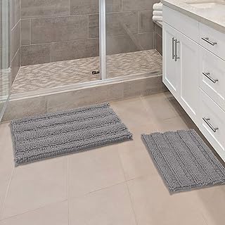 Ashler バスルームラグ ノンスリップ マイクロファイバー バスエリアラグ 2セット 吸水マット ウルトラソフト シャワーラグ フラシ天ランナー 洗濯機洗い可 カーペット グレー 17 x 24 & 20 x 32インチ