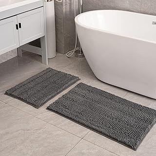 Feivea バスマット ラグジュアリー 厚手 シェニール 2点セット マイクロファイバー ノンスリップ シャギー ソフト バスルームマット 超吸収 洗濯機洗い可 ダークグレー (32×20 プラス 24×16インチ)