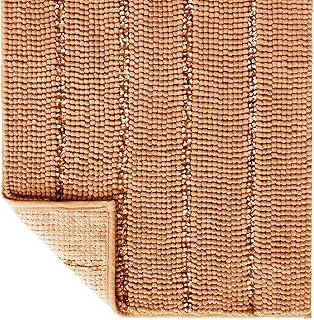 Tayis バスルームラグ 滑り止め 厚手 シェニール織 ストライプ バスラグ 吸水性 ソフト バスマット バスルーム キッチン 屋内用 (32インチ x 20インチ、キャメル)