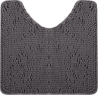 EFORPAD 曲線U字型トイレ用ラグ 20 x 20インチ シェニール織 ノンスリップ 曲線 バスマット ソフト 吸収性 洗濯機洗い可能 カーペット バスルーム トイレ用 グレー