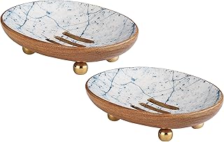 Folkulture ソープディッシュ ソープバーホルダー バスルーム用 ソープセーバー 滑り止めデザイン ソープトレイ皿2個セット シャワー用 排水穴付き 木製ホルダー 石鹸やスポンジ用 アカシアウッド ブループリント