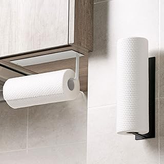 hengshao キッチンペーパーホルダー ロールホルダー タオルホルダー ペーパーホルダー 強力粘着 工具不要 簡単設置 ステンレス おしゃれ キッチンペーパー収納 タオルハンガー (2個セット, ホワイト)