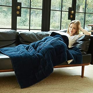 ウェイトブランケット 加重ブランケット 重い毛布 あったかい 掛け布団 不眠症対策 フランネル ボア シープ調 モフモフ 快眠 リバーシブル tobest トゥーベスト シングル ネイビー 140x190cm 4.5kg