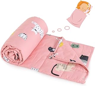 ブランケット 毛布 快眠グッズ 子供用 加重ブランケット ウェイトブランケット 2枚合わせ 重い毛布 安眠 リラックス 純綿 丸洗い(-ピンク ネコ 90×120cm 1.4kg)